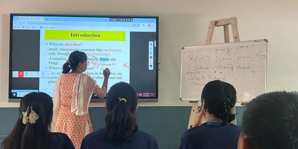 Well-ventilated and well-lit classrooms equipped with comfortable seating and digital teaching aids to enhance interactive learning.